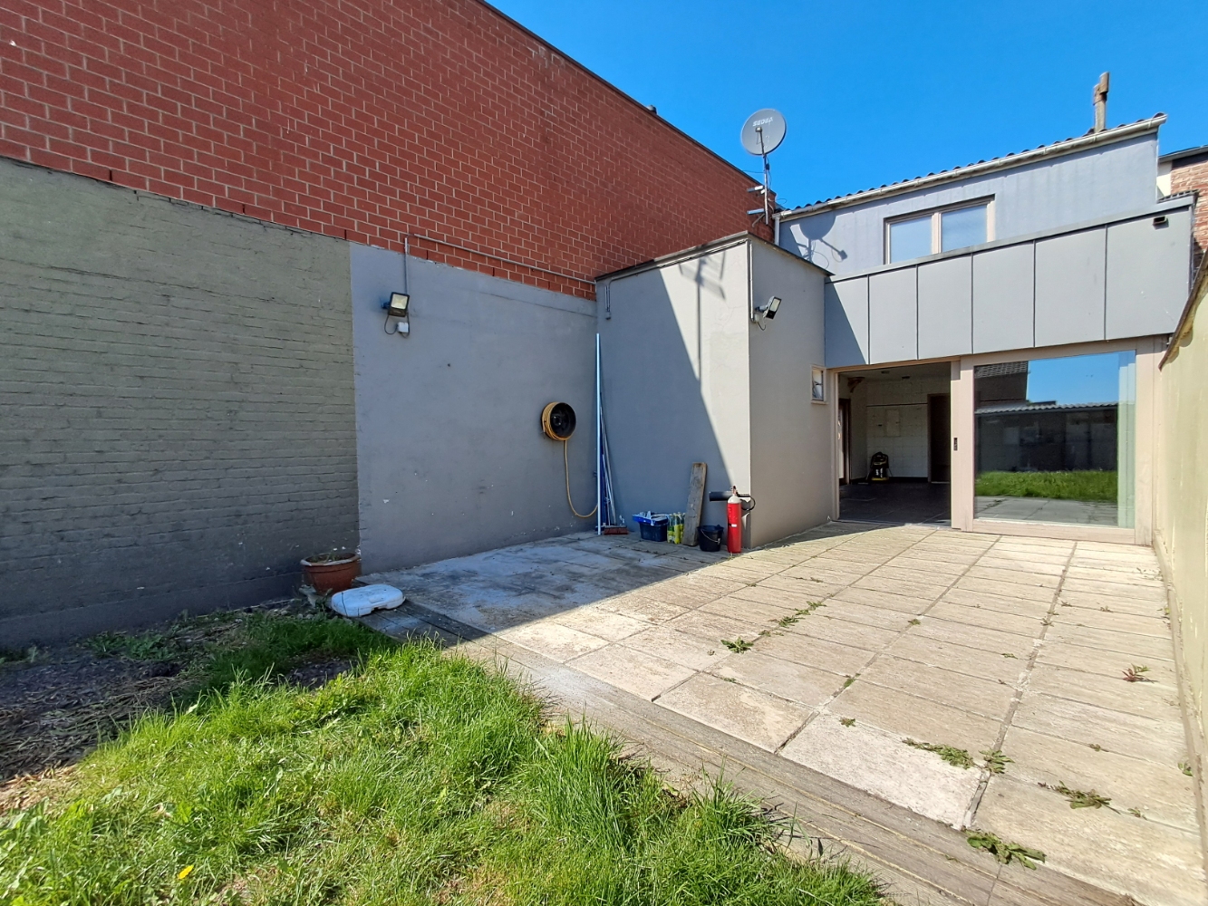 Anciennement exploitée comme pizzeria, elle dispose d'un espace commercial fonctionnel en rez-de-chaussée avec vitrine donnant sur la rue. Coin sanitaire, ainsi qu'une terrasse avec jardin.