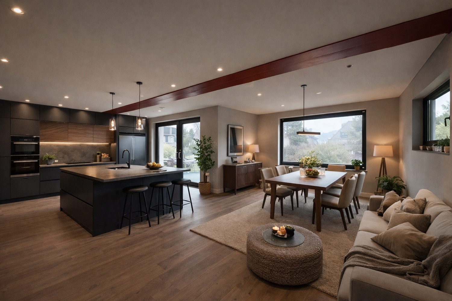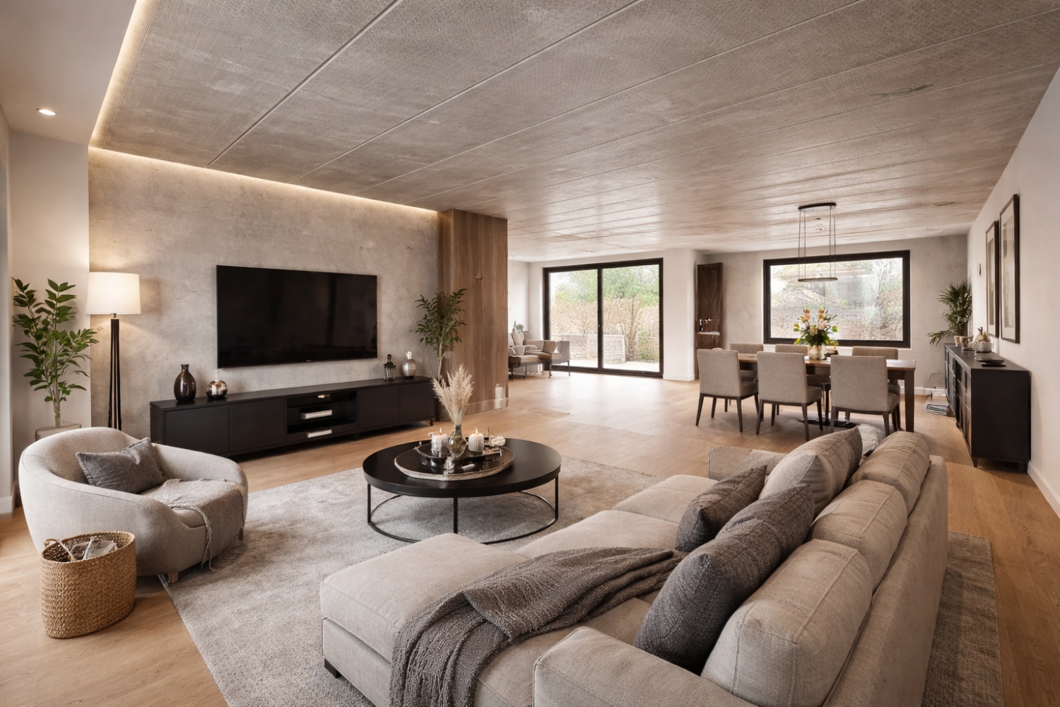 Avec 325m² habitables, cette habitation contemporaine a été pensée pour offrir confort, luminosité et liberté totale de personnalisation ; Cuisine, Salle de bains, Revêtement de sols et murs sont au choix des acquéreurs.
