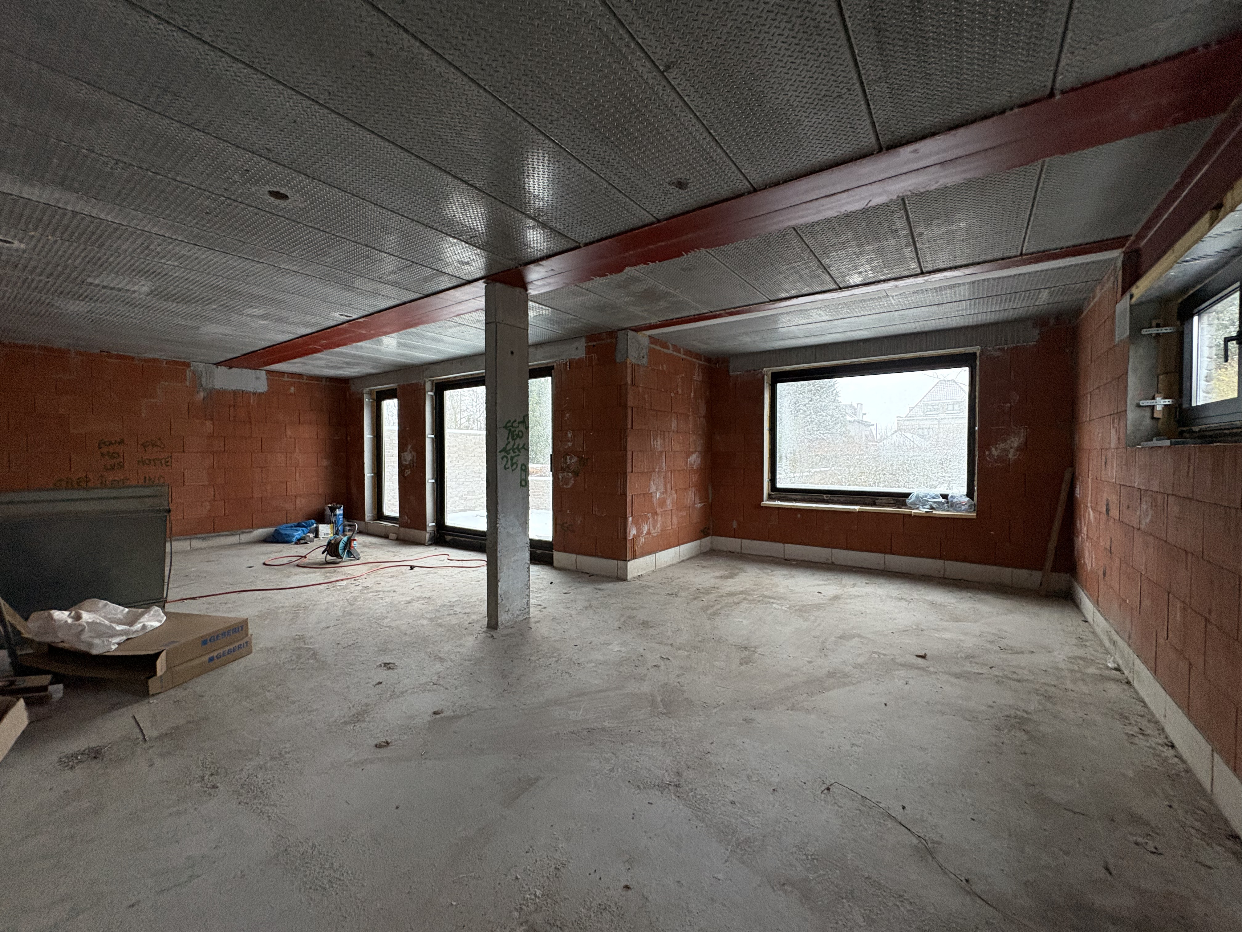 RDC de 145m² avec spacieux hall d'entrée avec escalier apparent en béton. Wc séparé, Bureau: idéal profession libérale ou télétravail. Très grand séjour lumineux avec accès au jardin. Cuisine ouverte à aménager selon vos envies. Arrière cuisine. Belle terrasse avec jardin arboré et clôturé.